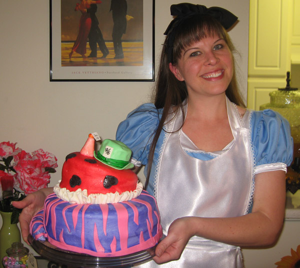 Year Birthday cake in the style of the Cheshire Cat, Queen of Hearts Bloomers,